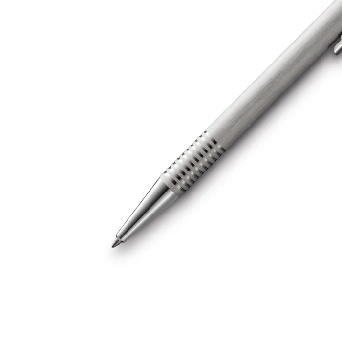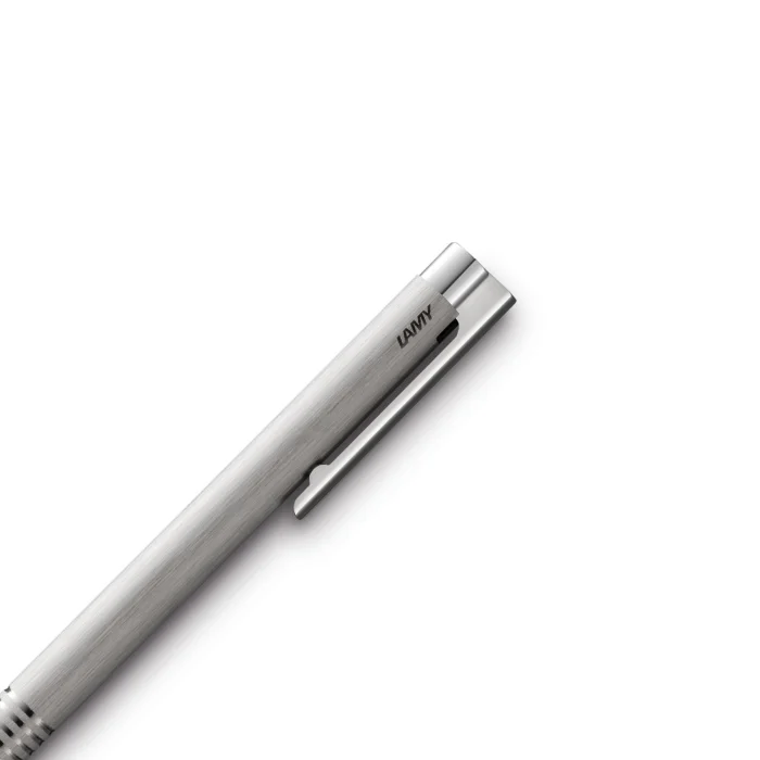 Ballpoint pen with LAMY logo textured stainless steel body Spring-loaded flexible steel clip Includes LAMY M16 blue refill Designer: Wolfgang Fabian International Design Awards: IF and Red Dot Made in: Germany