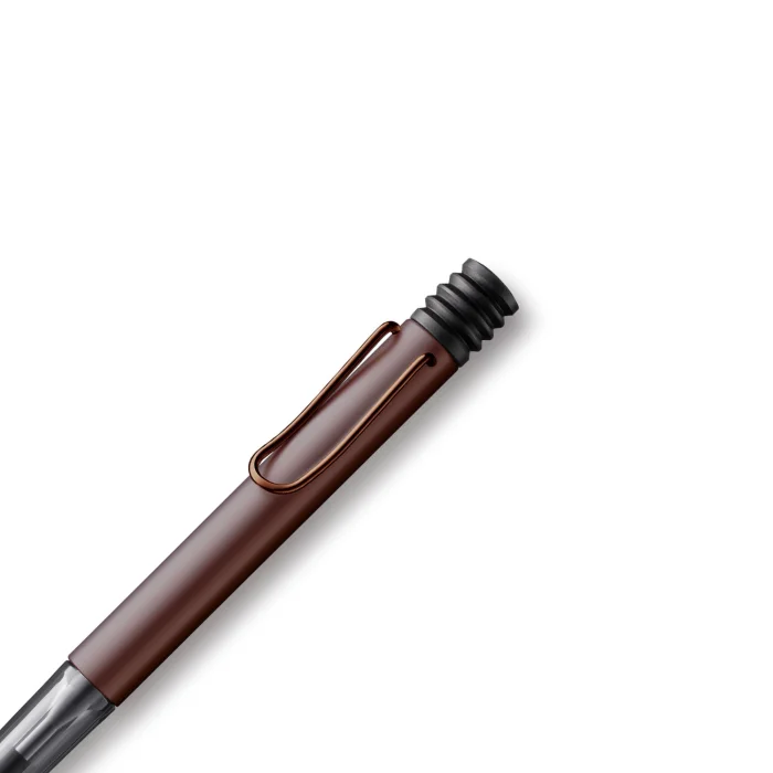 Ballpoint pen / marron colour anodized aluminium body / marron coating metal clip / ergonomic transparent grip / LAMY M 16 black ballpoint refil / with case metal case