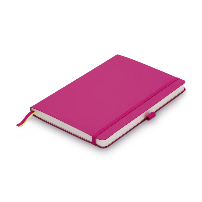 Soft cover notebook / pink/ A6 (102 x 144 mm) / LAMY lined notebook / 192 pages, 90 g/cu.m., chamois / 8 detachable pages / pen ring for writing utensils / 2 brackets / rubberized closure / inner pocket / threaded / ink-resistant paper / acid-free paper