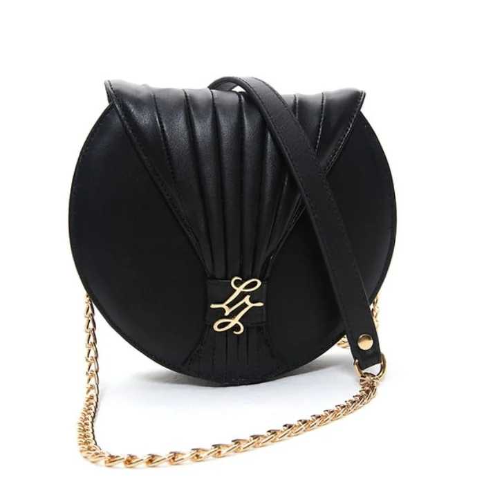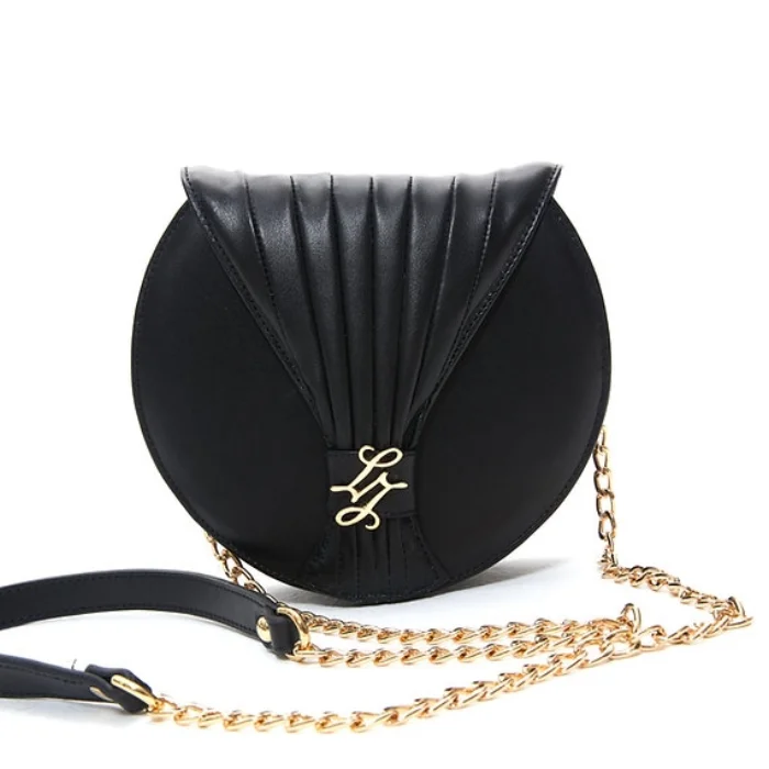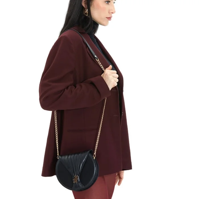 Detachable, leather bag with chain and shoulder detail, leather strap with magnet closure.