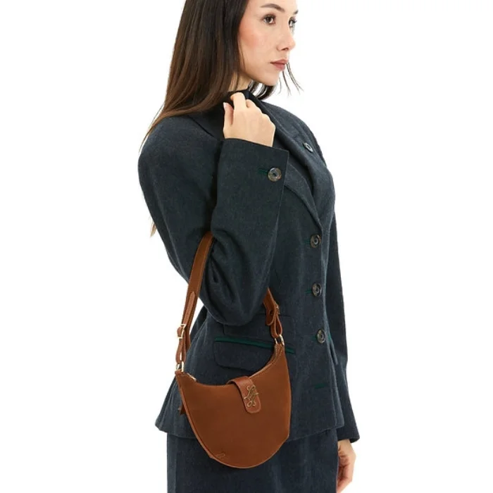 Detachable and adjustable shoulder strap, leather bag with zipper and magnet closure.