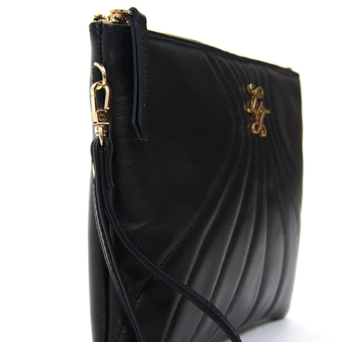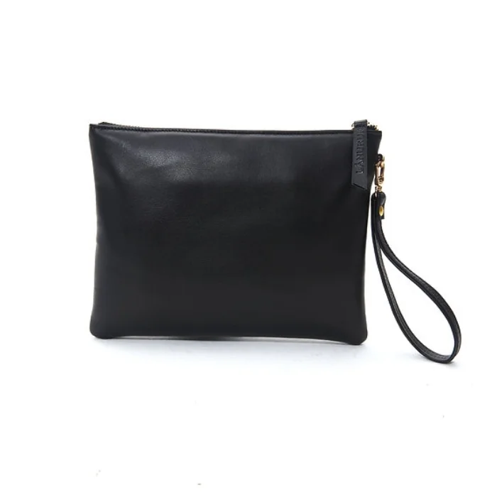 Detachable wrist strap, zipper and closure, leather hand portfolio.