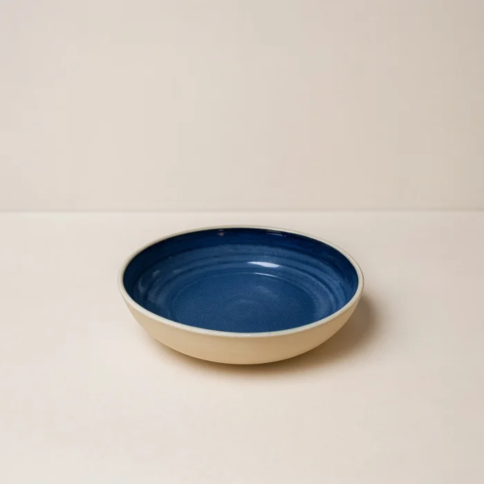 The matte and semi-matte glaze transitions on the interior create a balanced surface that highlights the food. On the exterior, the natural clay body is left visible, maintaining a direct connection to the raw material. This contrast gives the collection a characterful yet understated expression.