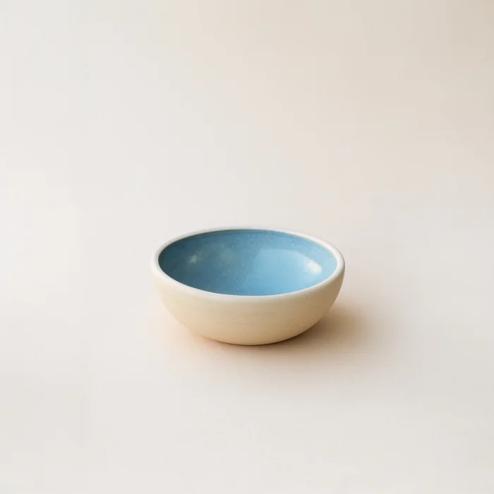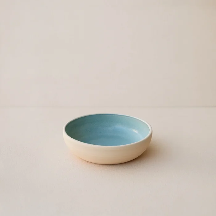 The matte and semi-matte glaze transitions on the interior create a balanced surface that highlights the food. On the exterior, the natural clay body is left visible, maintaining a direct connection to the raw material. This contrast gives the collection a characterful yet understated expression.