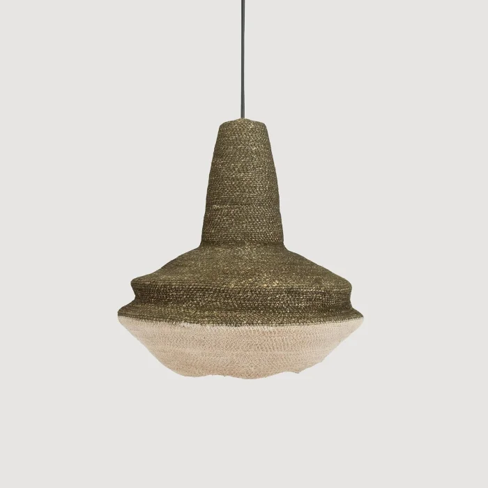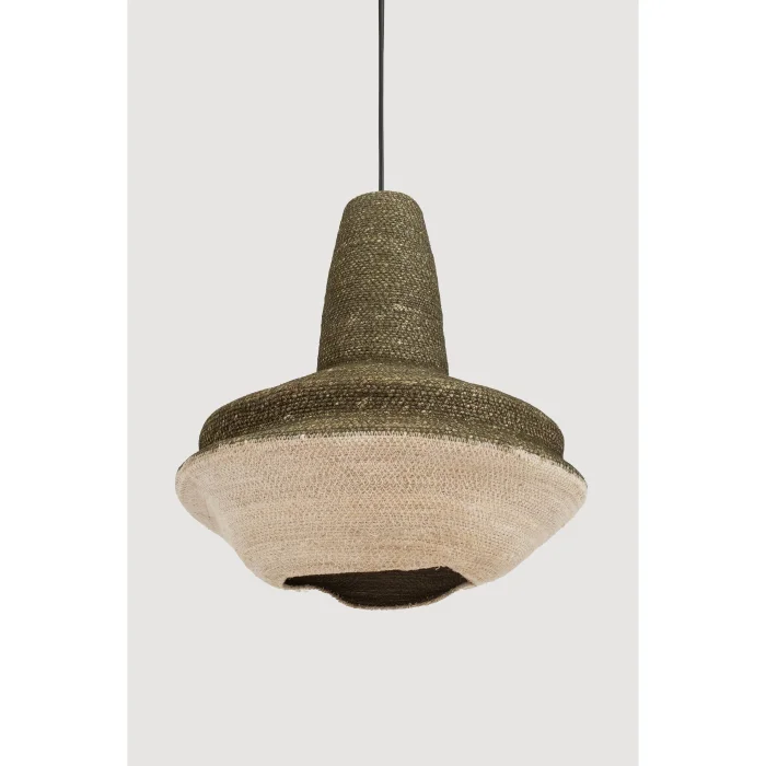A modern chandelier model made of natural materials with a wicker texture. An ideal lighting solution for rustic and bohemian style decorations. Handmade, ceiling light with conical shape and minimalist design. Add elegance to your home with natural and warm lighting. Suitable for bedroom, living room or dining room.