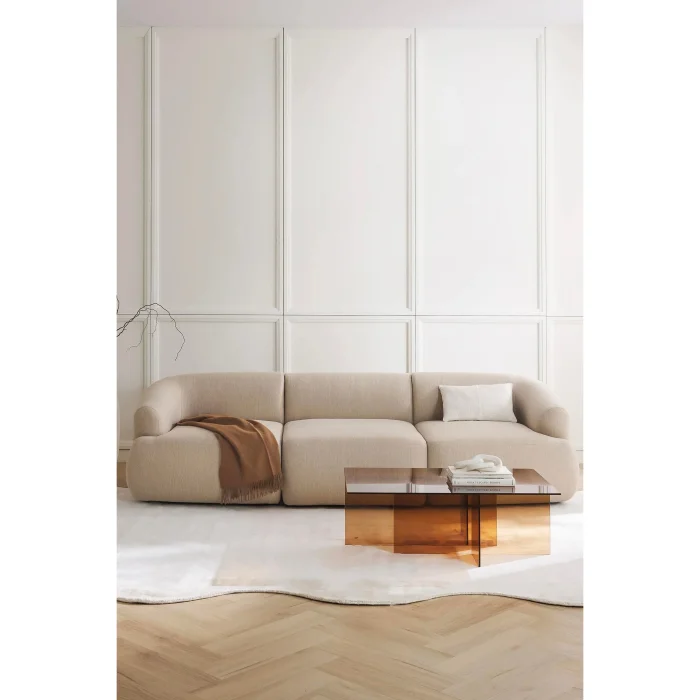 While it offers comfort with its fabric texture and ergonomic structure that adds warmth and elegance to modern living spaces, it offers both aesthetics and functionality together thanks to its large seating area. Made of high-quality materials, this sofa blends in with different spaces such as the living room, lounge or lobby, making it a timeless decoration item.