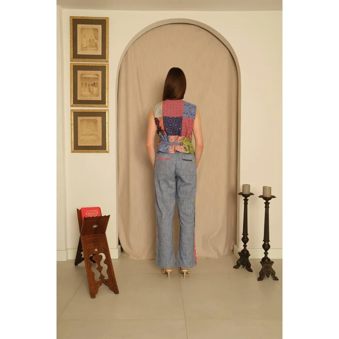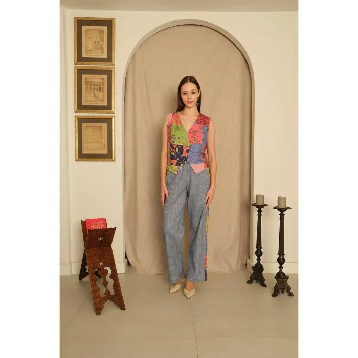 "*The patterns were created from the works of Artist Defne Camcıoğlu. * Viscose blended, *The product is made of flowing and soft-textured viscose blended fabric. * The product, which has a V-neck and back tie detail, offers a stylish look with its patch combinations. CARE RECOMMENDATIONS: Washing can be done at 30 degrees, Bleach cannot be used, Do not dry in the machine." BODY MEASUREMENTS