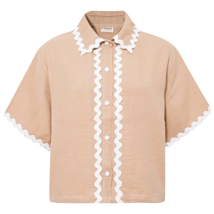 Product: Beige Short Sleeve Shirt With Waterstone Detail