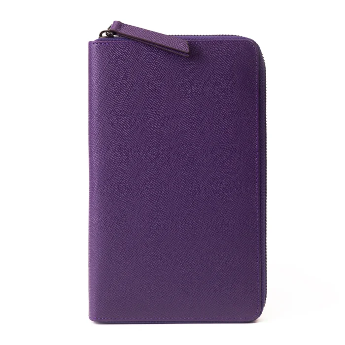 Textured Leather Zippered Organizer Hand Bag