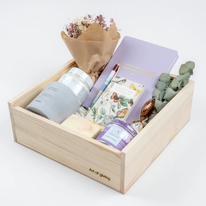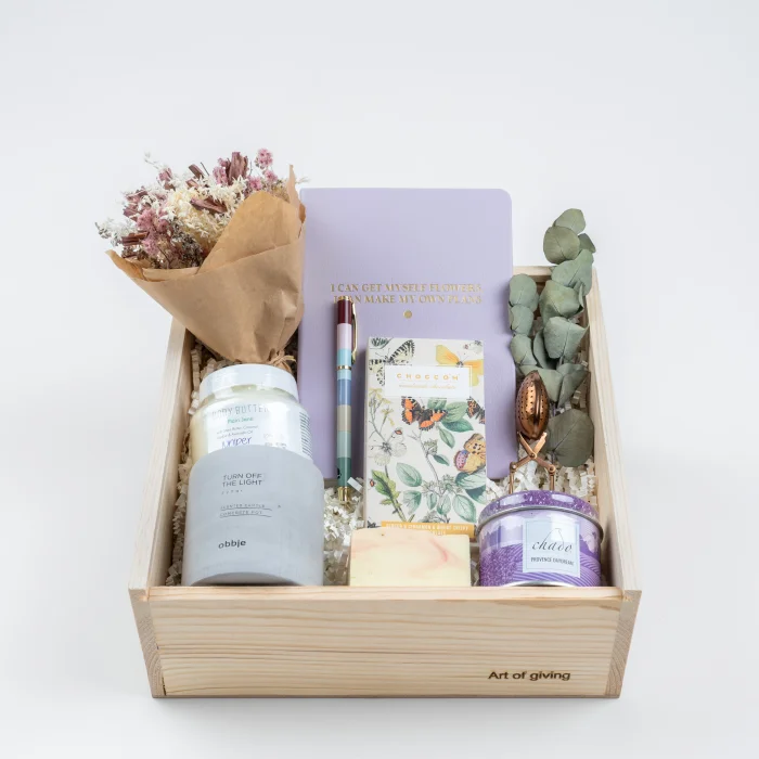 The Pamper Your Soul gift box will make the people you care about feel special with its carefully selected details. With the soothing scent of the cocoa-scented candle, the notebook that offers an artistic touch and other surprises that will make your days better, this box is the best way to say 'You are special to me'.