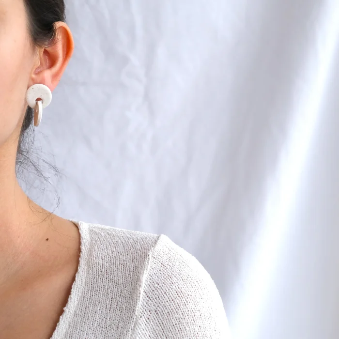Polymer clay is a lightweight material. It does not make weight in your ear.
