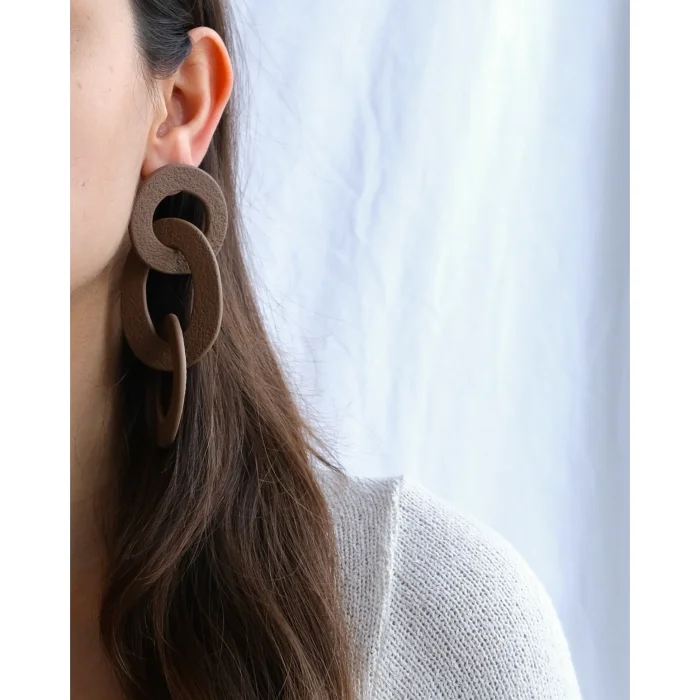Polymer clay earring Designed asymmetrically. Earring backs are stainless steel. Lenght is 6-8 cm. It has 2 loops at one side and 3 loops on the other. Sizes and color may vary and have nuances because all designs are made by hand. Polymer clay is a very light weighted product.