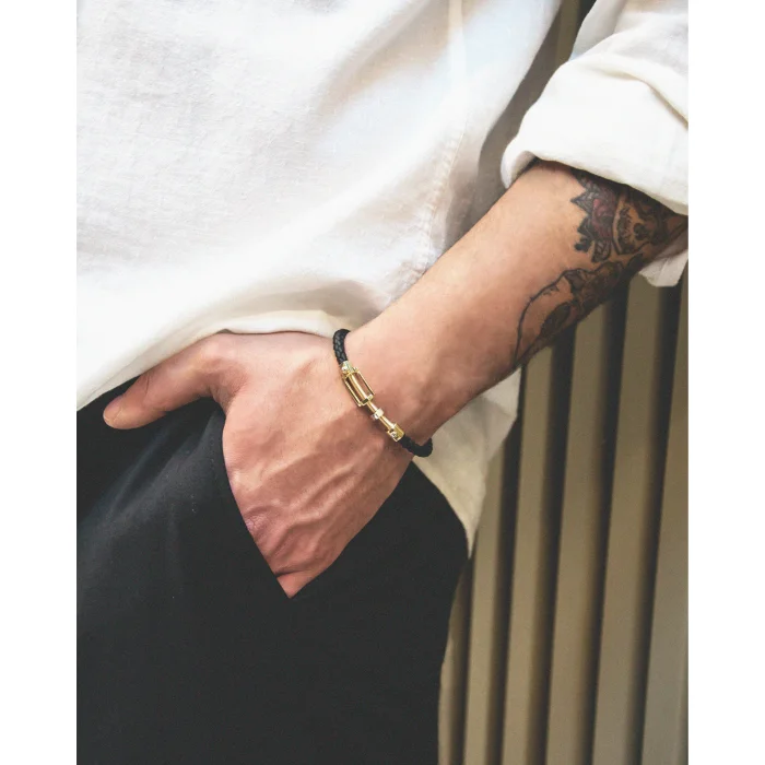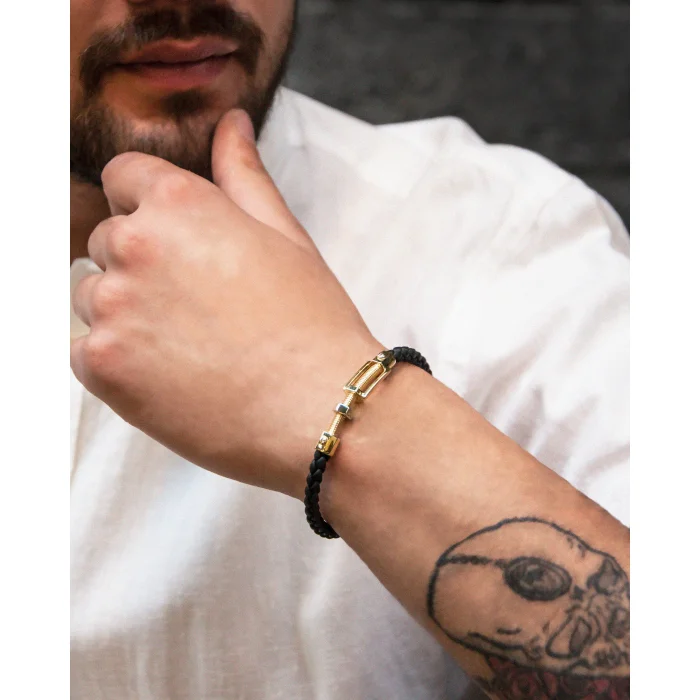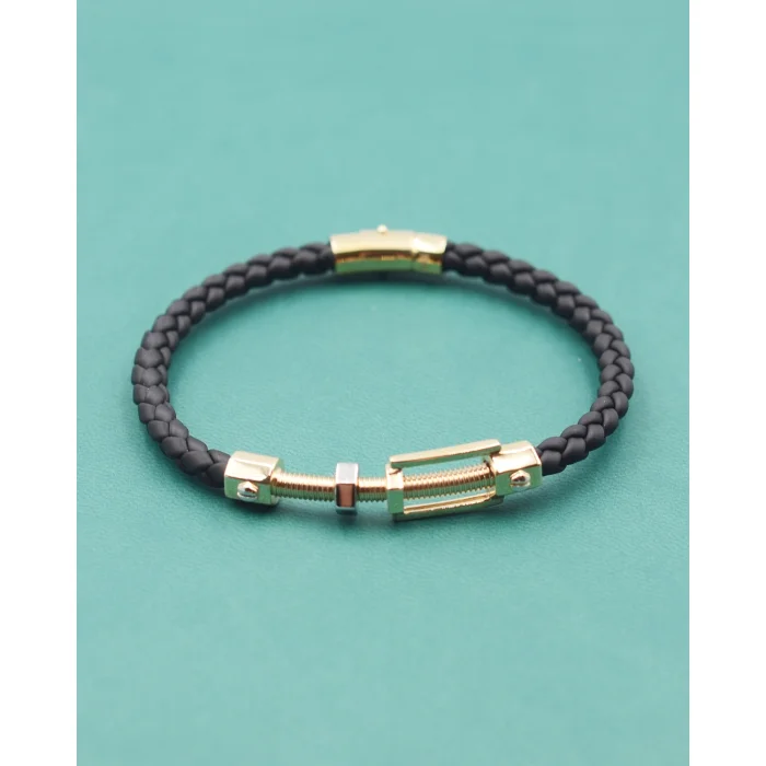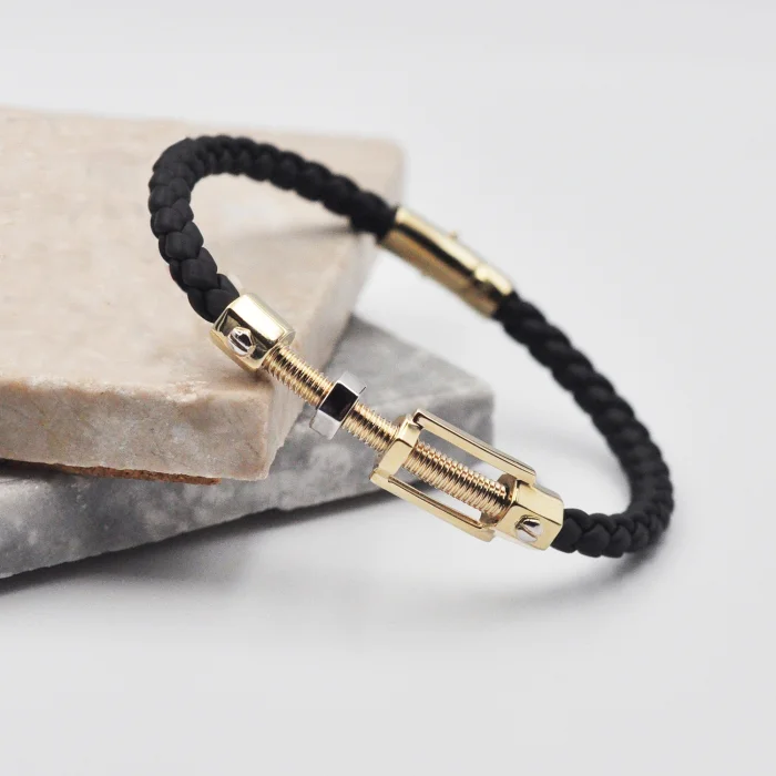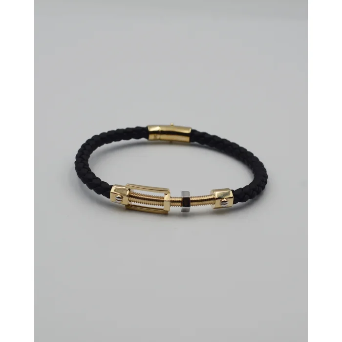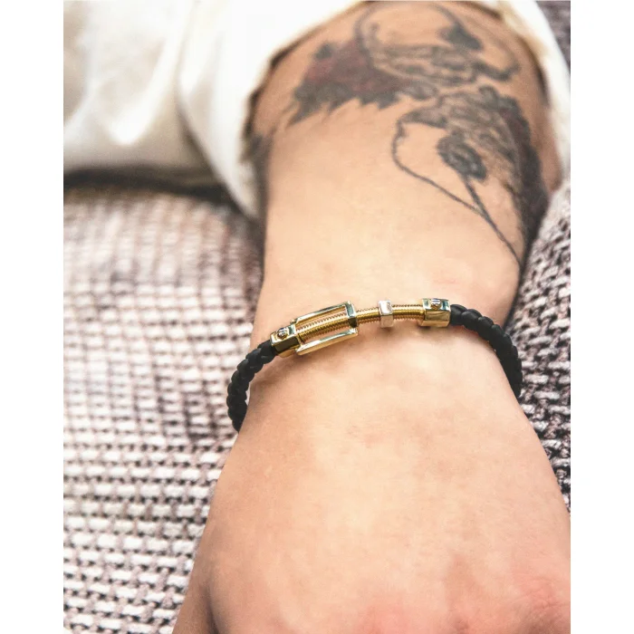 Material: 14K Yellow Gold- 14K White Gold Screw - Leather