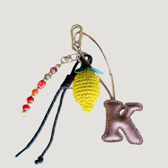 Lemon accessory is knitted with paper thread.