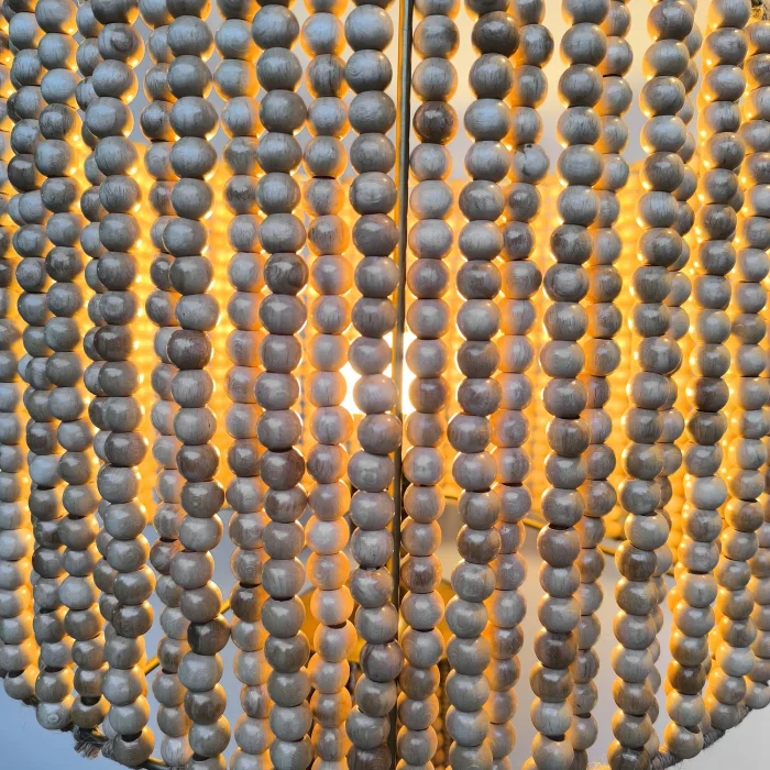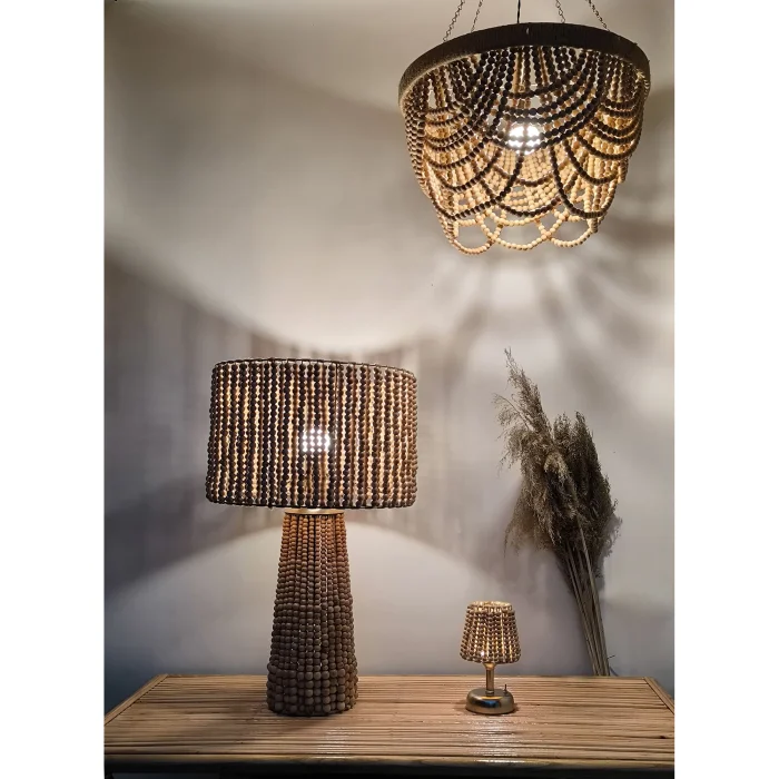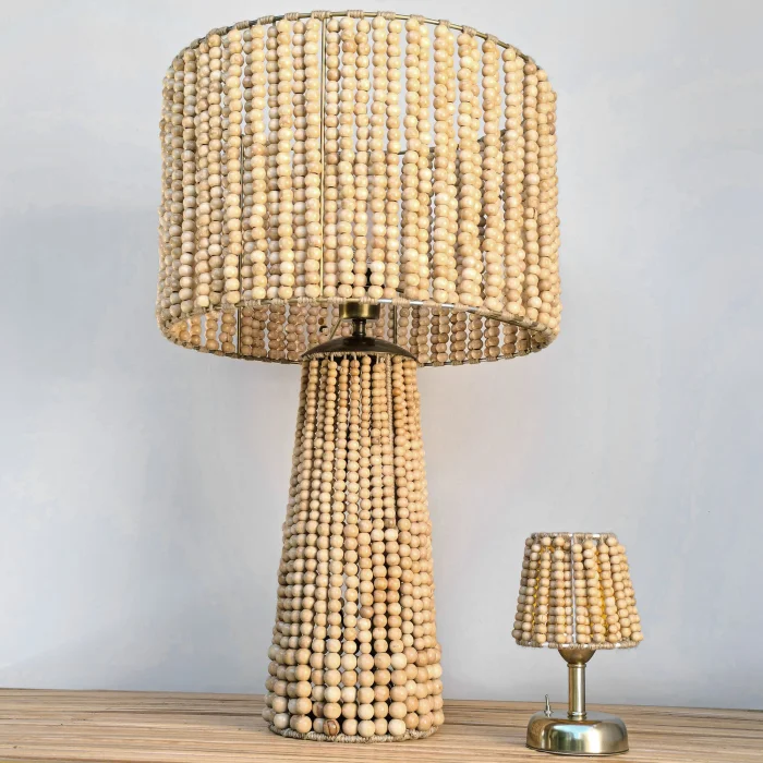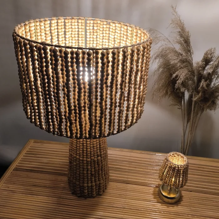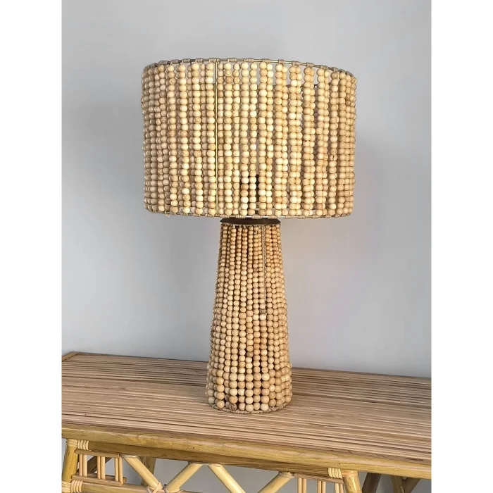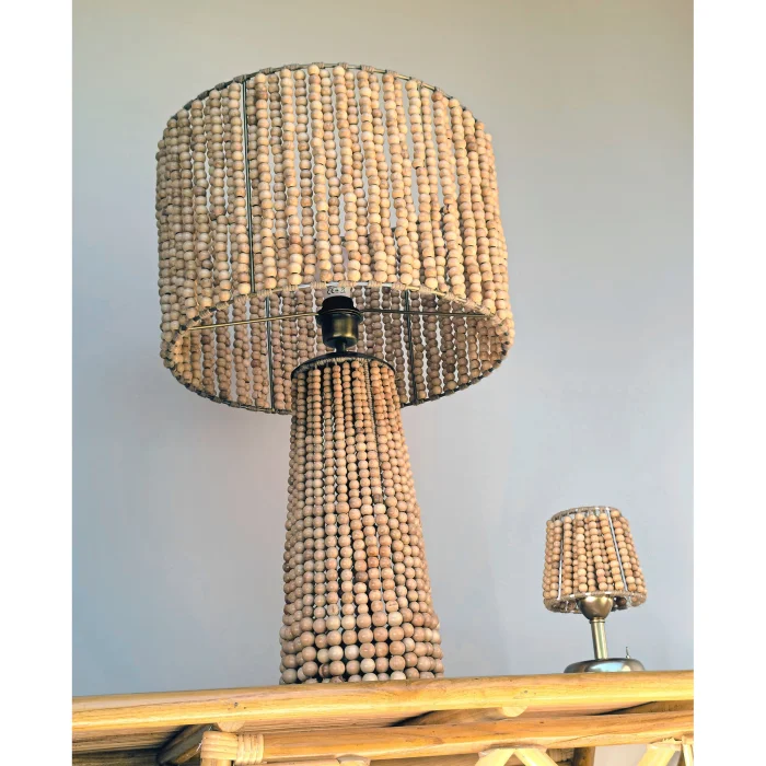Product: Large Wood Beaded Table Lamp - Handcrafted Boho Design