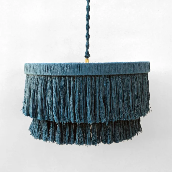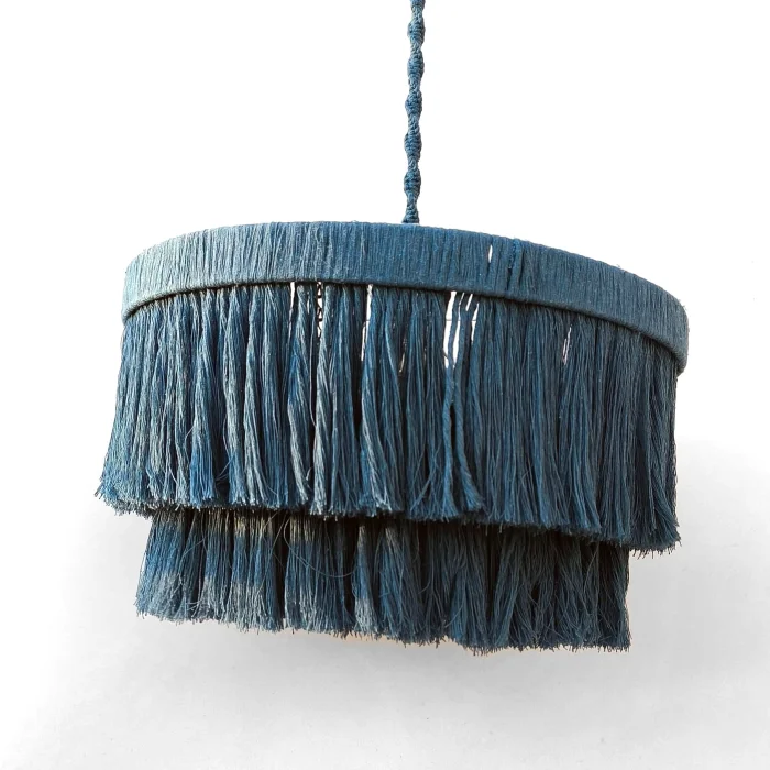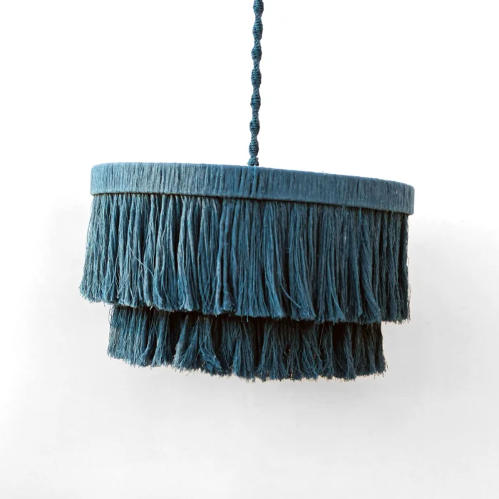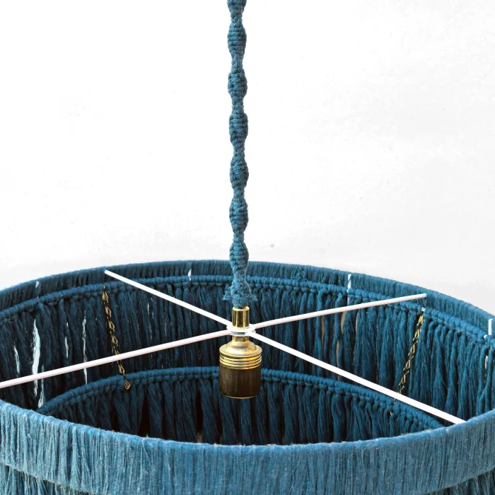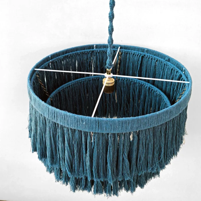 This decorative chandelier, which stands out with its two-storey design with macrame tassels and gold details, brings together the natural texture of handicraft with modern lines, adding a warm and elegant atmosphere to living spaces. Thanks to its balanced form with a diameter of approximately 50 cm, it creates a strong but non-tiring focal point in the space. Handmade macrame threads filter light softly, while metal gold details add a stylish and sophisticated contrast to the design. Compatible with the E27 lamp holder, the chandelier allows the desired light ambiance to be created with different bulb options and is shipped ready to use without the need for installation. It offers an aesthetic lighting solution that complements bohemian, modern, rustic and natural decoration styles in many spaces such as living rooms, dining areas, bedrooms, entrances, cafes, boutiques or hotels.