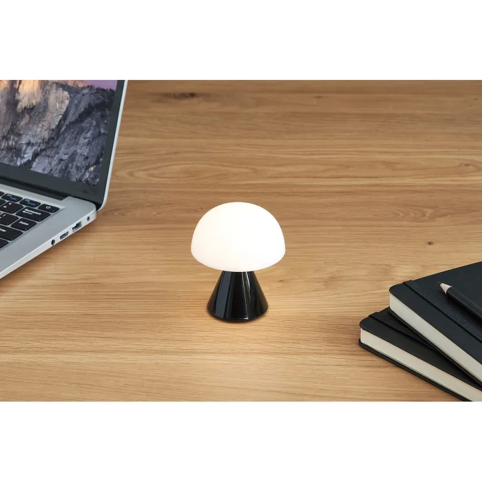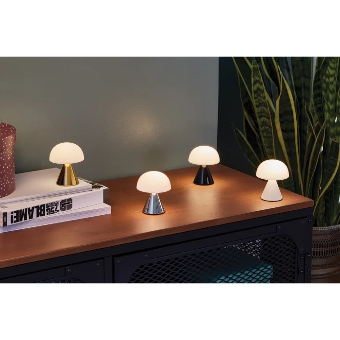 Mini LED lamp adjustable cold or warm LED Memory dimmer aluminum Finish Rechargeable 6 hour battery life UBC-C.