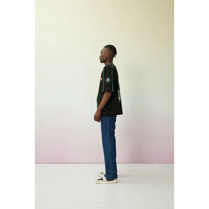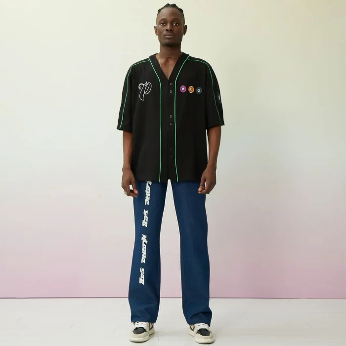 Baseball sweatshirt/shirt with a V-neck, embroidered detail on the front and back, and press-studs. Model length: 185 cm Model wears outfit: SMALL size Main Structure: 100% COT Machine Wash 30 °C Do not dry in a dryer. Wash by turning upside down. Wash with similar colors.