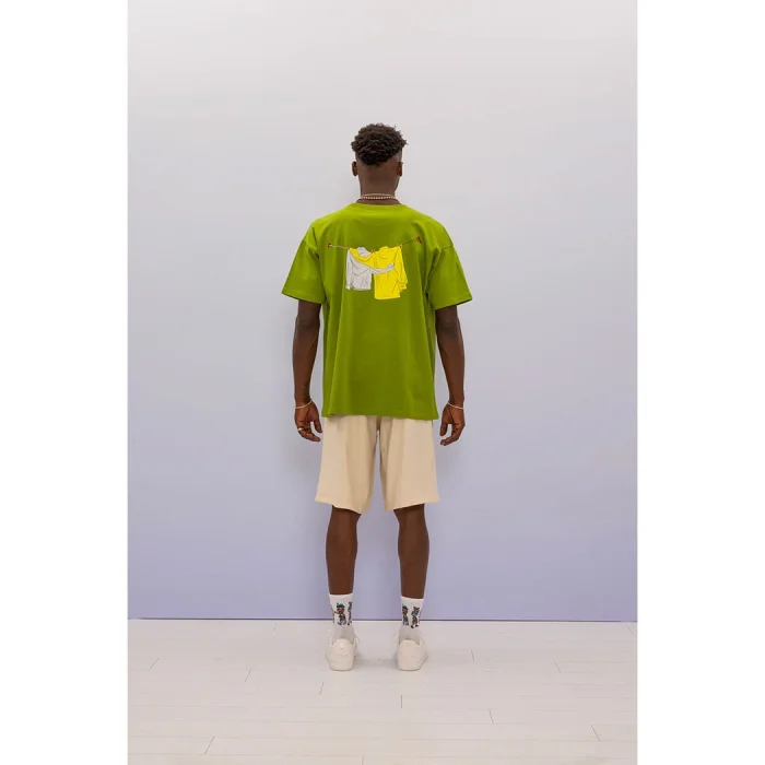 UNISEX oversized green t-shirt with hand drawn print on the back.