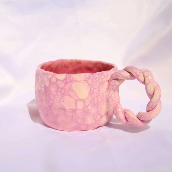Handmade Ceramic Mug With Bubble Twist Handle 200 Ml