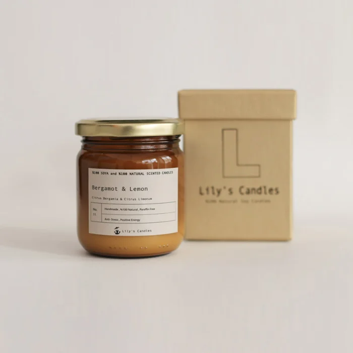 Bergamot & Lemon Scented %100 Natural Soy Candle have Anti-Stress and Positive Energy aromatheraphy effect.