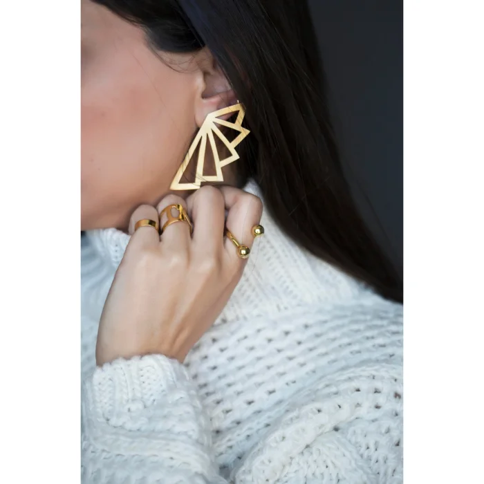 Asymmetrical Triangle Earrings Features 925 sterling silver It is an asymmetrical product. It is a combinable piece Color: Gold