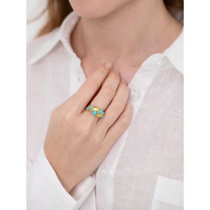 AYZA TURQUOISE RING FEATURES: 925 Sterling Silver 22K Gold Plated Approximate Weight: 5.6gr Its diameter can be adjusted according to your finger