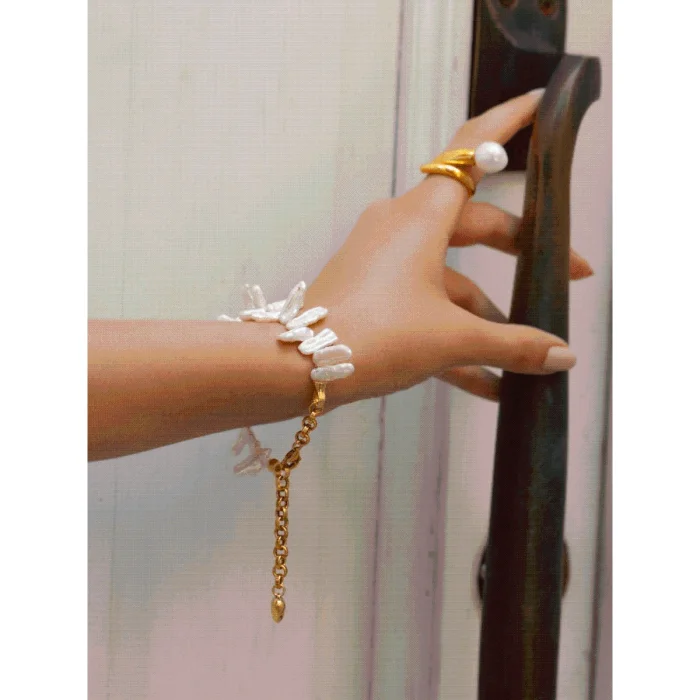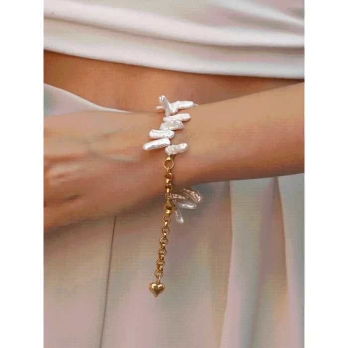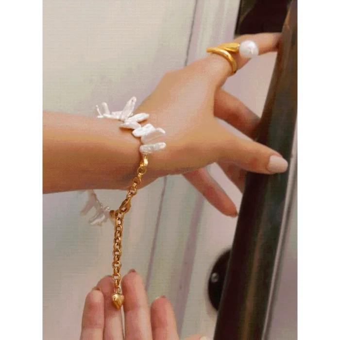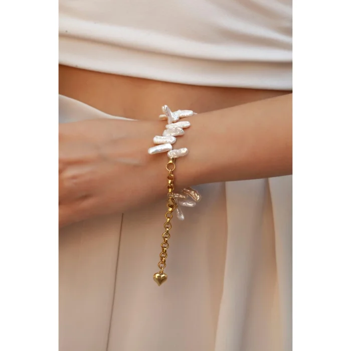 Asymmetrical natural pearls are used.