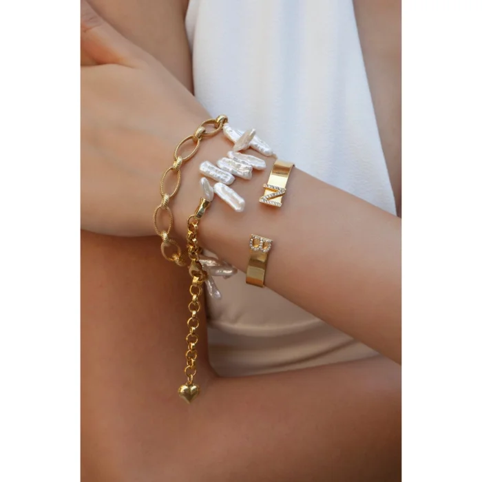 There is a silver heart symbol on the end of the bracelet.