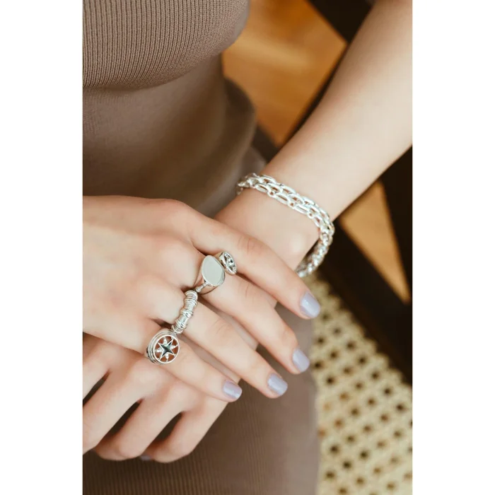 925 sterling silver available in: Rose (14K Rose Gold Plated), Silver White Approximate Silver Weight: 3.25 gr It is detailed with black color obtained with hot enamel technique and zircon stone. Adjustable size/ size.