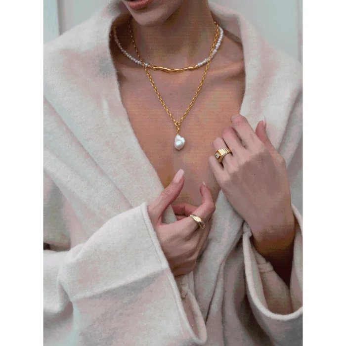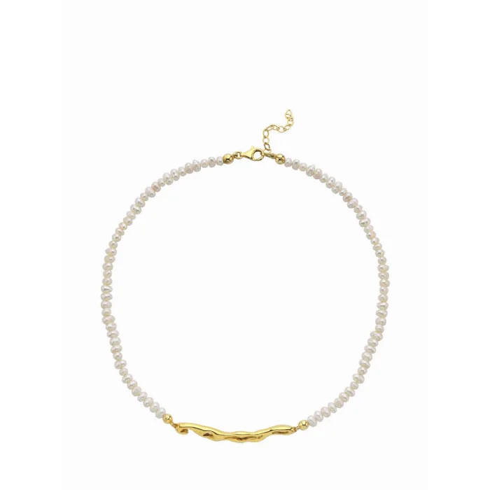 The Pearl Necklace has an eye-catching design that combines elegance and elegance. The pearl symbolizes femininity and sophistication, while its horizontally placed form adds a modern touch. Made using 925 sterling silver, this necklace offers an excellent option to complete your style both in daily life and on special occasions. Its sparkling silver details combine with pearl to create an elegant balance. If you are looking for a piece that suits your own style and personality, this necklace allows you to attract attention with your elegance and adds meaning to every moment. This eye-catching design will add an elegant touch to your jewelry collection. Necklace Features: 925 Sterling Silver 22K Gold plated Natural Sand Pearl is used. Color: Silver - Gold Pendant Length: 40cm+5cm