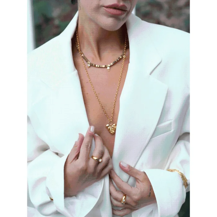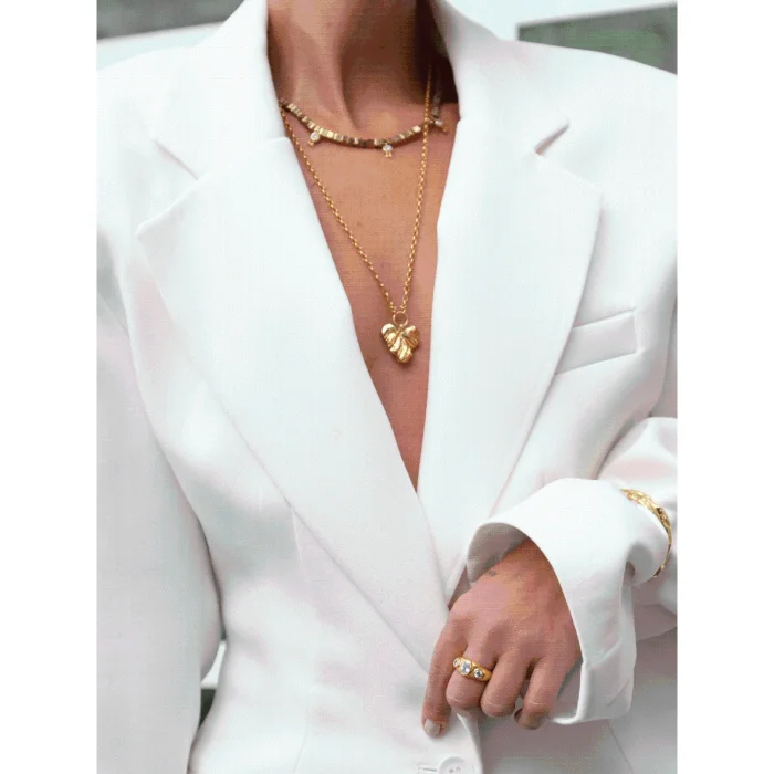 Tesa Heart Necklace The heart necklace combines elegance and elegance with 22-carat gold plating on 925 sterling silver. The heart form, prepared with special craftsmanship, draws attention with its detailed engraving patterns on its surface and adds a unique depth to the design. The heart symbol has been recognized throughout history as a universal expression of love, affection, and emotional attachment. This elegant necklace stands out as a meaningful way to express your love for your loved ones or your self-worth. This necklace, which will complement your elegance in daily use or offer a meaningful gift option for special occasions, will add a luxurious touch to your style. Offering the quality of 925 sterling silver and 22 carat gold plated together, this accessory stands out as an elegant design that stands out among gold-plated necklace models. Heart Necklace Features: 925 Sterling Silver 22K Gold plated Color: Silver - Gold Necklace Length: 45cm, 60cm