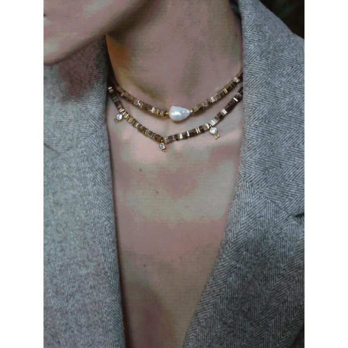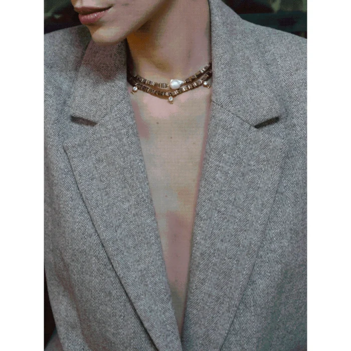 Yarn Baroque Pearl Hematite Stone Necklace Made with brown hematite natural stones, this necklace combines elegance and naturalness. The natural baroque pearl in the middle of the necklace draws attention with its unique form and is in perfect harmony with the warm tones of brown hematite stones. Hematite is known as a stone that is believed to provide confidence, balance, and protection due to the earth element. This stone helps reduce stress and anxiety, while providing mental clarity and focus. The Baroque pearl, on the other hand, symbolizes individuality and originality. This special design will complement your elegance in daily use and stand out as a remarkable accessory in your special moments. The combination of brown hematite natural stones and baroque pearls will add a different touch to your style, adapting to any style. This necklace will combine natural beauty and meaning, adding a special glow to your every moment. Necklace Features: 925 Sterling Silver 22K Gold plated Light brown natural hematite stone is used. Natural Baroque Pearl is used. Color: Silver - Gold Necklace Length: 39cm+5cm extension