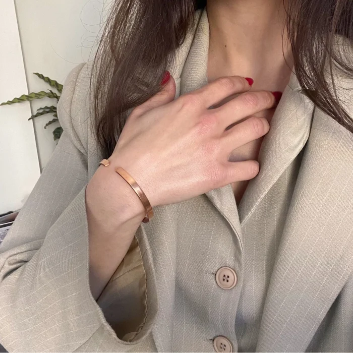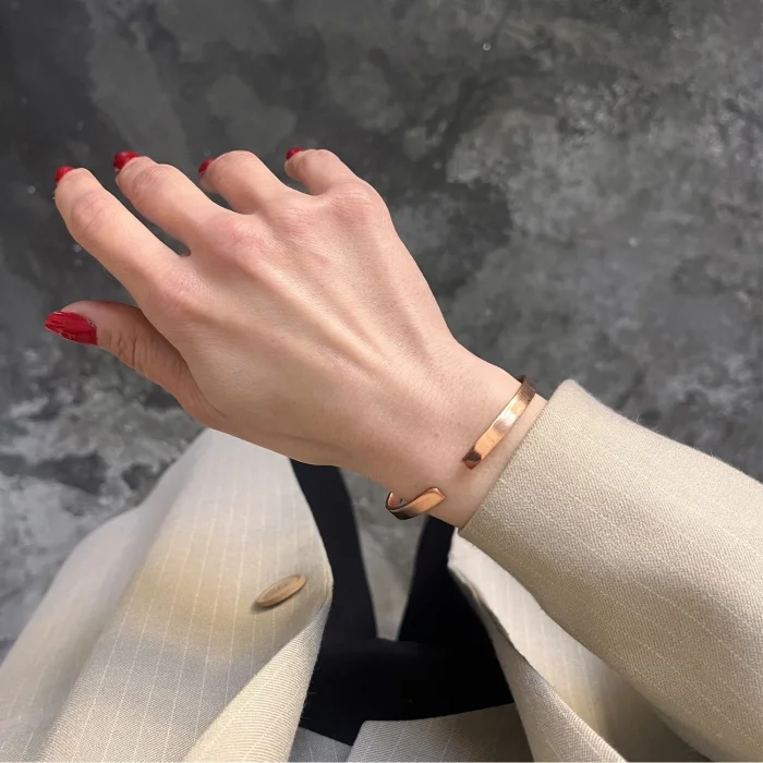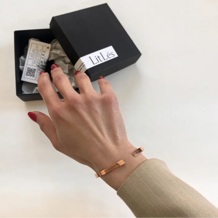 Thanks to its adjustable open form, it adapts to different wrist sizes.
