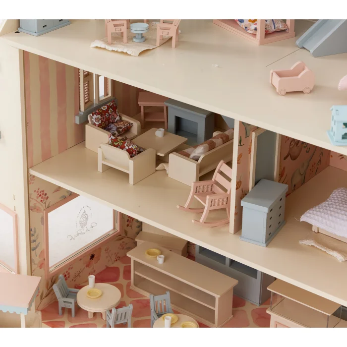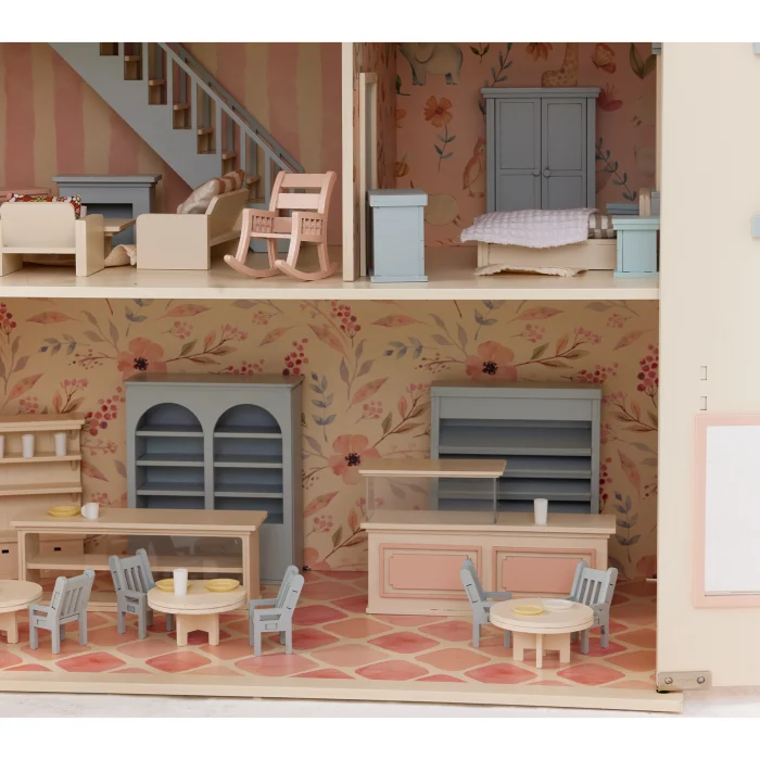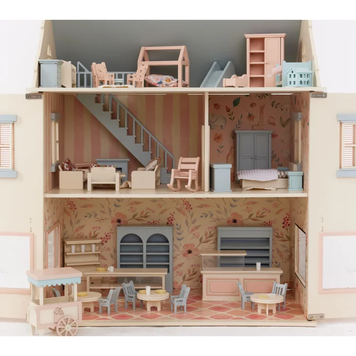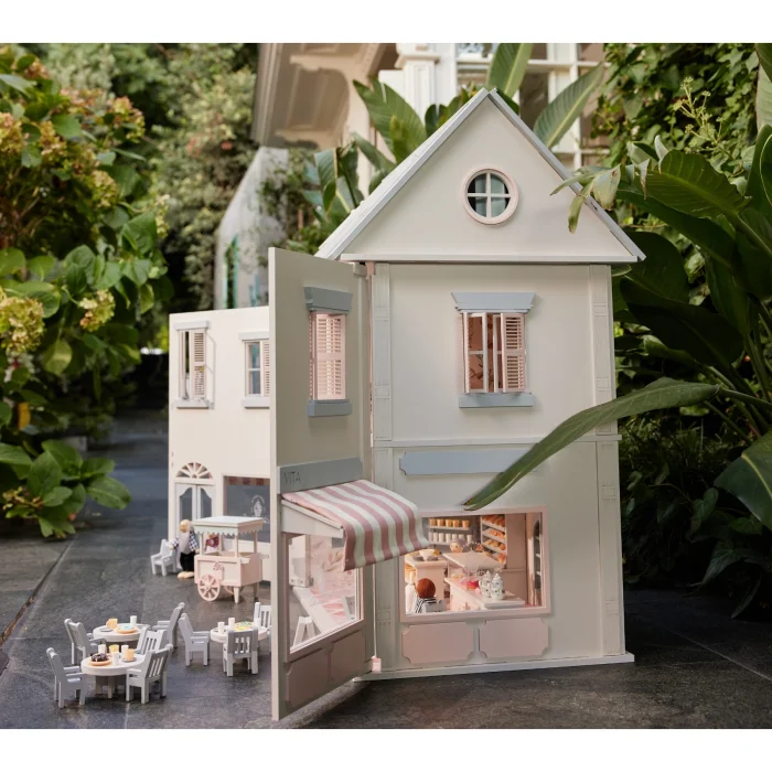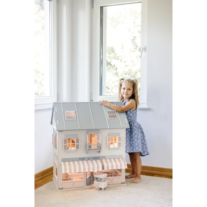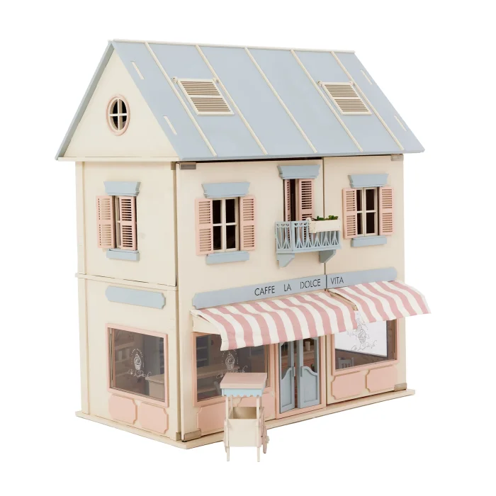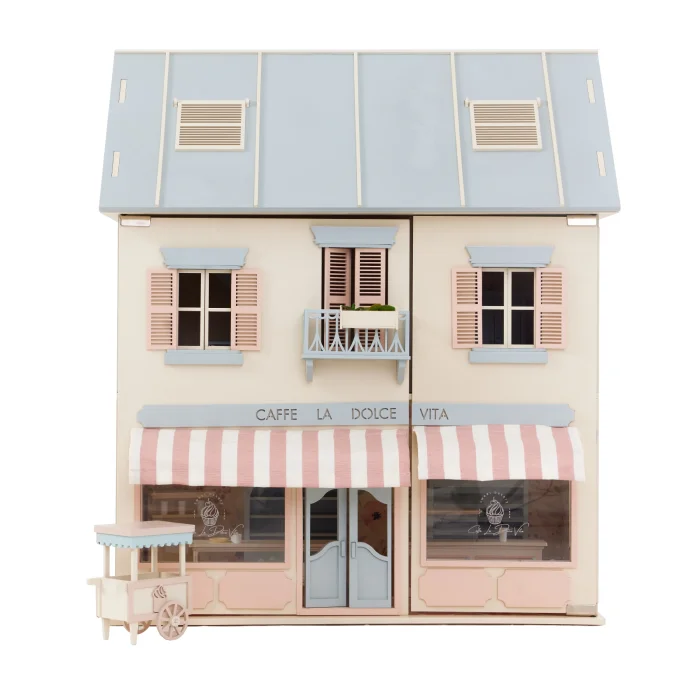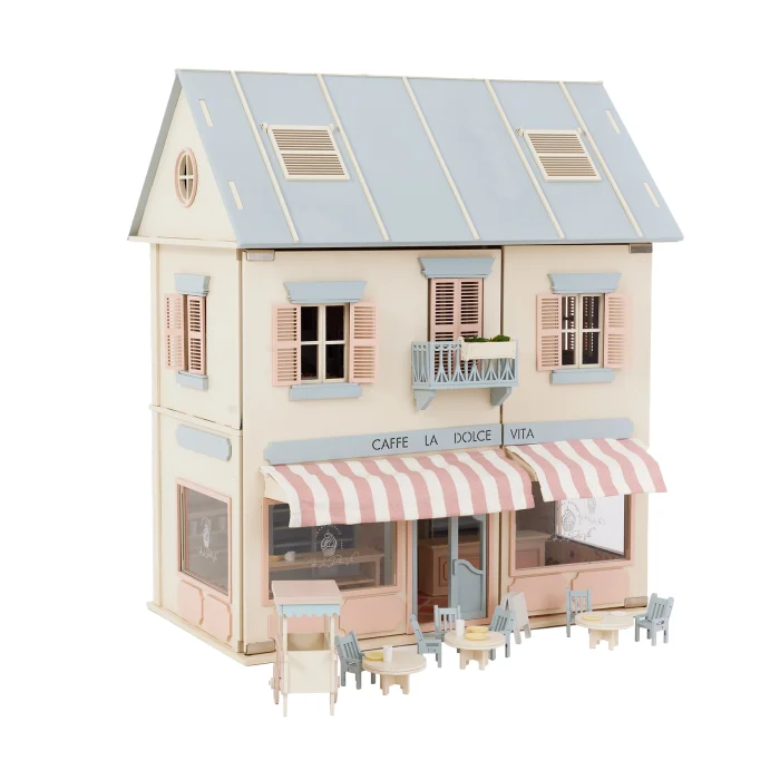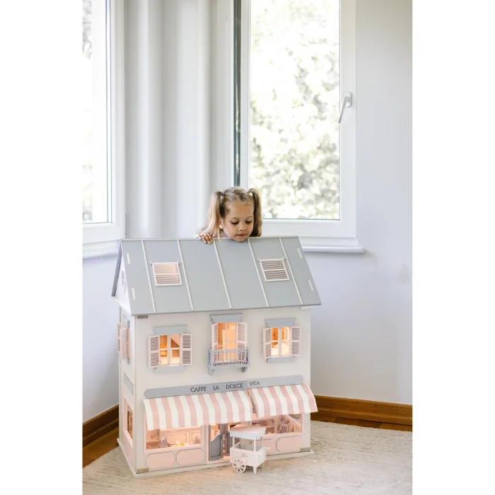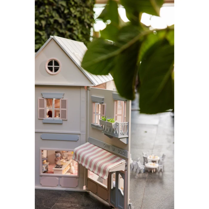 Every house whispers a story, and the House of Rome tells an elegant tale of sweet life and sweeter dreams. With its pink shutters, flower-adorned walls, and its little café and bakery, this is not just a toy—it is a stage where your child’s imagination blossoms anew each day.