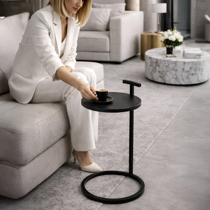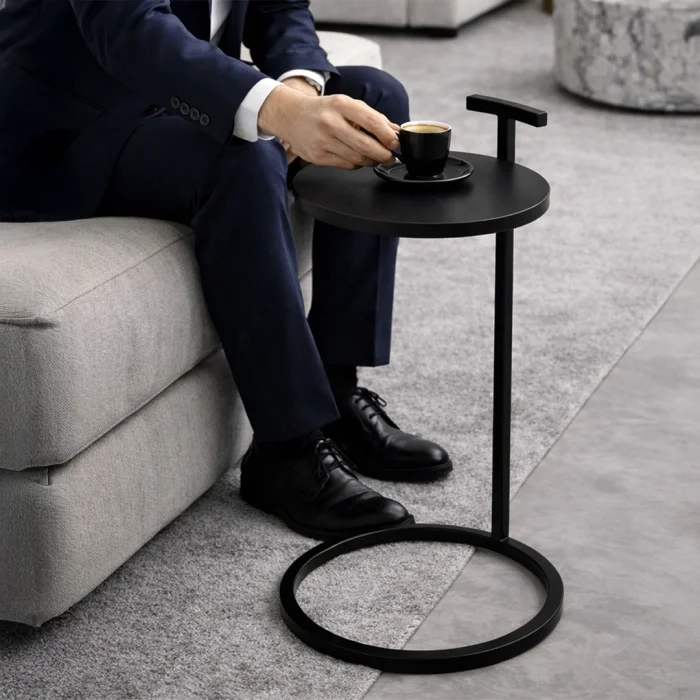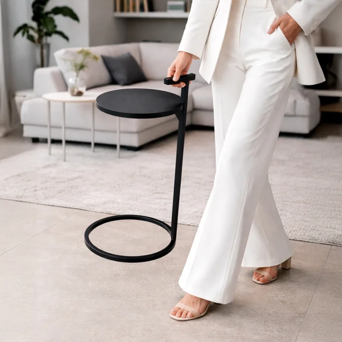 The ARC Handle Side Table is a handcrafted side table designed for modern living spaces.