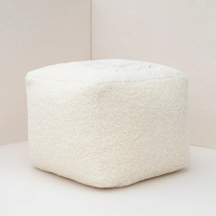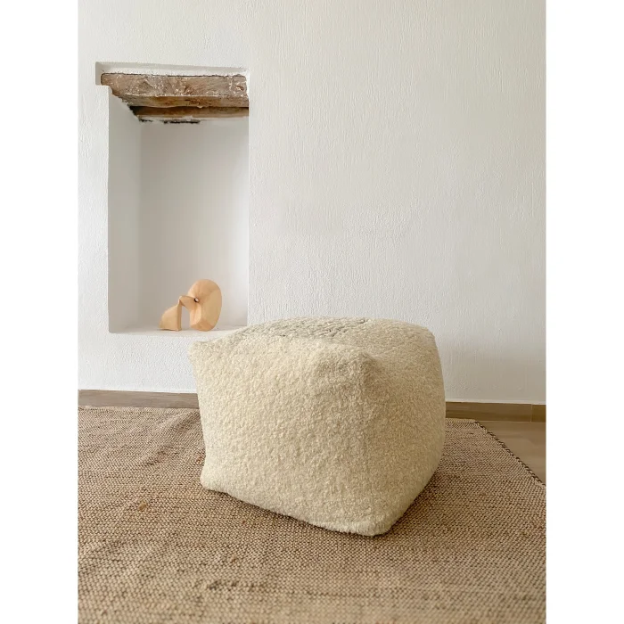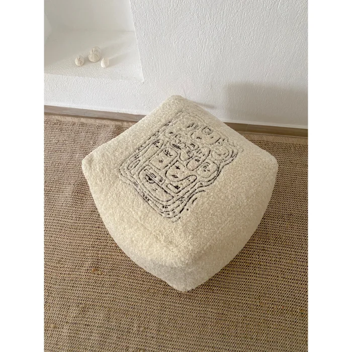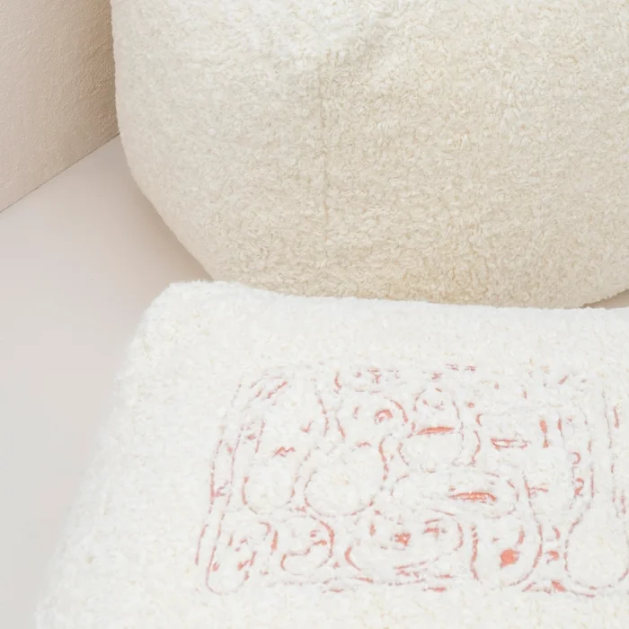 PRODUCT TEXTURE AND COLOR: BLACK EMBROIDERY ON ECRU COLOR PLUSH FABRIC