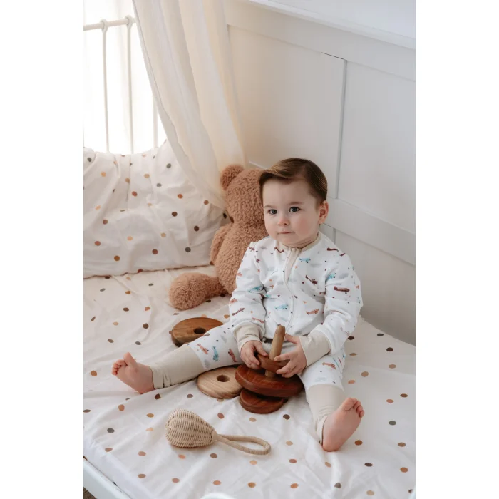 Lollie 1.0 TOG Sleeping Bags help your baby sleep peacefully without getting cold or sweating by maintaining the ideal temperature throughout the night. Its fabric, which is specially woven for sensitive baby skin, is a blend of 50% Modal and 50% Cotton. It has an extra soft and flexible structure thanks to the all-natural flywheel modal fabric produced from natural beech wood fibers. It offers a perfect softness to your baby's skin. A TOG value of 1.0 is ideal for room temperatures of 20-24 C. It retains heat throughout the night, wraps your baby and creates a safe sleeping space for him. It offers the option of use according to needs with Open-Close booties. With the extra flexible texture of the fabric, it provides freedom of movement and comfort throughout the night. It does not contain harmful chemicals. All patterns are colored with Oeko-Tex Standard and GOTS certified paints.