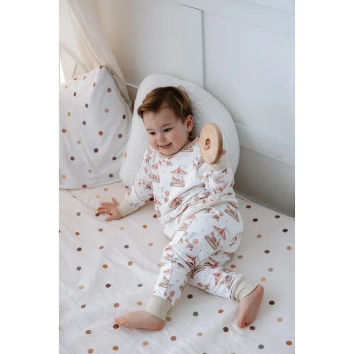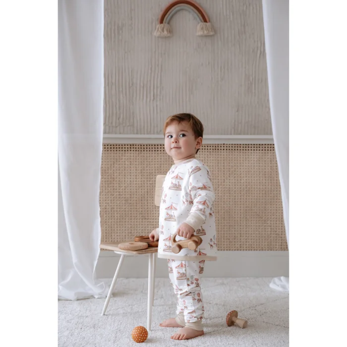 Lollie 1.0 TOG Pajama sets help your child sleep peacefully without getting cold or sweating by maintaining the ideal temperature throughout the night. Its fabric, which is specially woven for sensitive baby skin, is a blend of 50% Modal and 50% Cotton. It has an extra soft and flexible structure thanks to the completely natural modal fabric produced from natural beech wood fibers. It offers a perfect softness to your baby's skin. A TOG value of 1.0 is ideal for room temperatures of 20-24 C. It retains heat throughout the night, wraps your baby and creates a safe sleeping space for him. The extra length at the hem of the pajamas is designed so that it does not uncover during sleep. With the extra flexible texture of the fabric, it offers freedom of movement and comfort throughout the night. It does not contain harmful chemicals. All patterns are colored with Oeko-Tex Standard and GOTS certified paints.