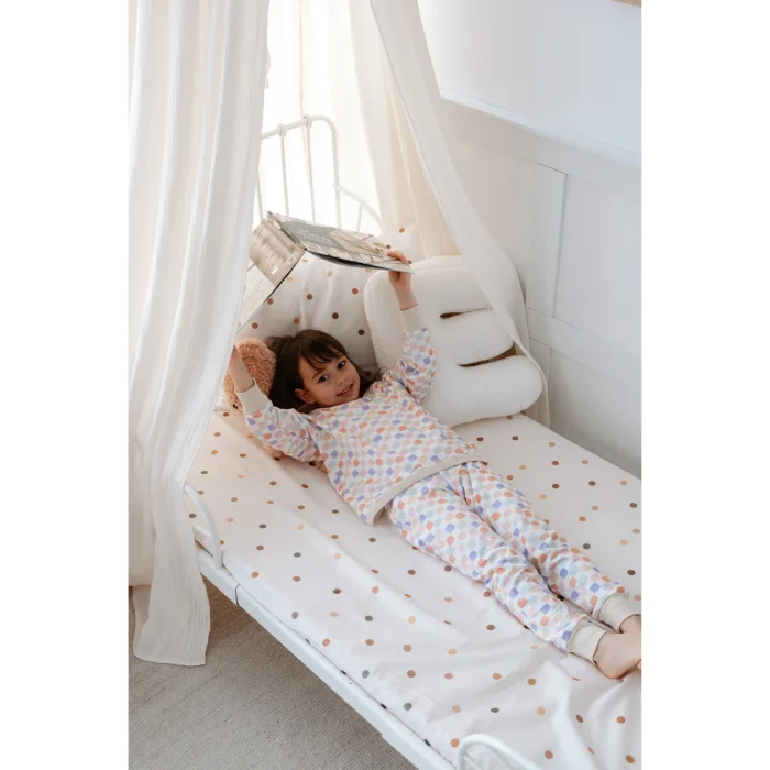 Lollie 1.0 TOG Pajama sets help your child sleep peacefully without getting cold or sweating by maintaining the ideal temperature throughout the night. Its fabric, which is specially woven for sensitive baby skin, is a blend of 50% Modal and 50% Cotton. It has an extra soft and flexible structure thanks to the completely natural modal fabric produced from natural beech wood fibers. It offers a perfect softness to your baby's skin. A TOG value of 1.0 is ideal for room temperatures of 20-24 C. It retains heat throughout the night, wraps your baby and creates a safe sleeping space for him. The extra length at the hem of the pajamas is designed so that it does not uncover during sleep. With the extra flexible texture of the fabric, it offers freedom of movement and comfort throughout the night. It does not contain harmful chemicals. All patterns are colored with Oeko-Tex Standard and GOTS certified paints.