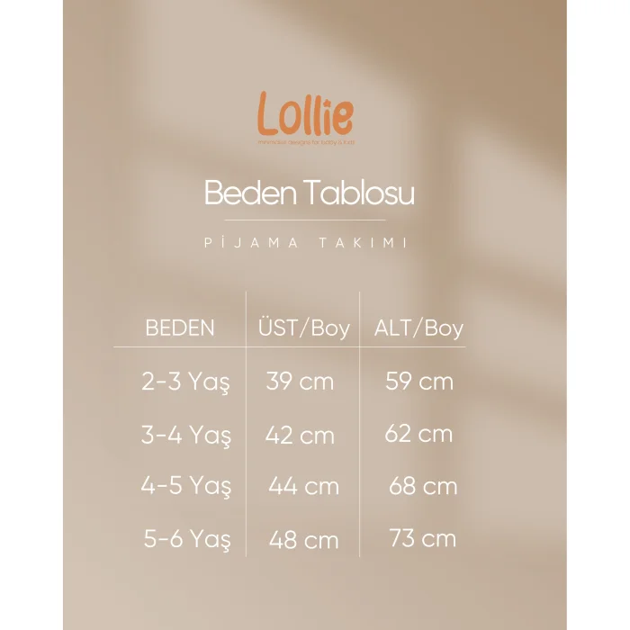 Lollie 1.0 TOG Pajama sets help your child sleep peacefully without getting cold or sweating by maintaining the ideal temperature throughout the night. Its fabric, which is specially woven for sensitive baby skin, is a blend of 50% Modal and 50% Cotton. It has an extra soft and flexible structure thanks to the completely natural modal fabric produced from natural beech wood fibers. It offers a perfect softness to your baby's skin. A TOG value of 1.0 is ideal for room temperatures of 20-24 C. It retains heat throughout the night, wraps your baby and creates a safe sleeping space for him. The extra length at the hem of the pajamas is designed so that it does not uncover during sleep. With the extra flexible texture of the fabric, it offers freedom of movement and comfort throughout the night. It does not contain harmful chemicals. All patterns are colored with Oeko-Tex Standard and GOTS certified paints.