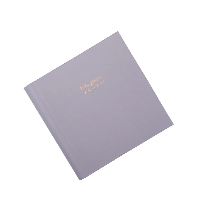 We produced this Cloud Grey Baby Memory Book with 190 grams of top quality white paper and hard cover with hidden spiral. We bound it with a characteristic fabric and traditional methods. Measuring 22 x 22 cm, this scrapbook and photo album consists of 70 pages and allows you to record your baby's first year in your own style.