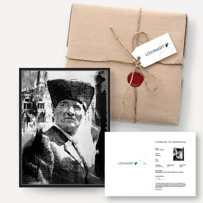 LIMITED EDITION ART PRINTS An edition is defined as a copy or replica of a work of art made from a master. When making production in limited editions, the number of editions to be produced is determined in advance under the supervision of the painter, and the work is not produced more than this number. CERTIFICATE of AUTHENTICITY The limited edition artwork is sent to the art buyer together with the signature of the artist on the 'Certificate of Authenticity' indicating which copy of the total editions. In addition, all the printing details, including the printing technique, quality and the fine art paper used, are listed on the certificate. MUSEUM-QUALITY PRINTING & MODERN FRAMING OPTIONS Museum-quality archival pigment prints that we produce using Giclée (Spraying) technique on Hahnemühle fine art paper with world class printing machines are fine art prints with a life span of more than 100 years under normal room conditions. Acid-free and 100% cotton-based Hahnemühle fine art papers are excellent in terms of proximity to the original work in details and colors, and are guaranteed against fading. DIASEC works are printed on metallic photo paper with C-Print technic. You can either order only fine art prints in rolls or choose from our modern framing alternatives according to your taste and receive them ready to be hung. We do the completely hand-crafted and meticulous framing process with long-lasting, quality materials.
