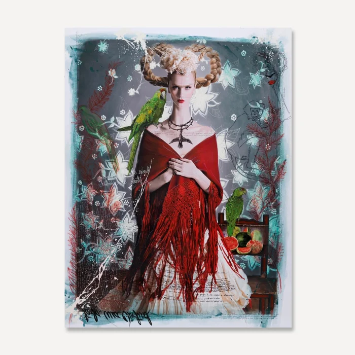 Product: Blonde Frida With Red Shawl By Efren Isaza Print
