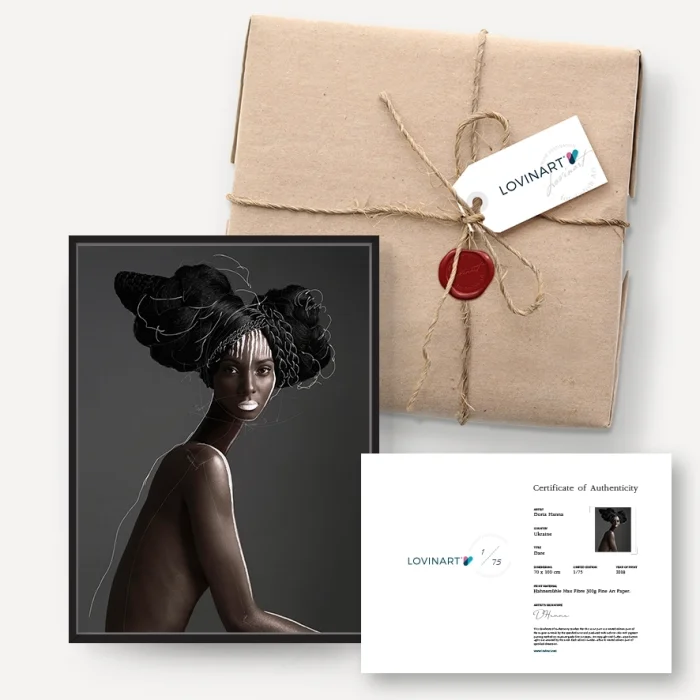 LIMITED EDITION ART PRINTS An edition artwork is defined as a copied or verbatim reproduction of an original work. While producing in limited editions, the number of editions of the work to be produced is determined in advance under the supervision of the artist who owns the work, and the work is not produced more than this number. CERTIFICATE OF AUTHENTICITY A limited edition artwork is sent to the art buyer with the artist's signature and the 'Certificate of Authenticity' indicated on which copy of which edition it is. In addition, all printing features, including the technique and quality with which it is produced, and the fine art paper used, are included on the certificate. MUSEUM-QUALITY PRINTS AND MODERN FRAMING OPTIONS Museum-quality archival pigment prints that we produce using Giclée (spraying) technique on only 200 grams of Hahnemühle fine art paper with world-class printing machines; They are fine art prints that have a lifespan of more than 100 years under normal room conditions. Acid-free and 100% cotton-based, Hahnemühle fine art papers, which give excellent results in terms of closeness to the original work in details and colors, are also guaranteed against fading. DIASEC products are printed on Metallic Photo Paper with the C-Print technique. You can only order fine art prints of your works in rolls, and you can even choose the one that suits your taste from our modern frame alternatives and receive them ready to be hung. We make the framing process, which we carry out completely handcrafted and meticulously, with long-lasting, quality materials.