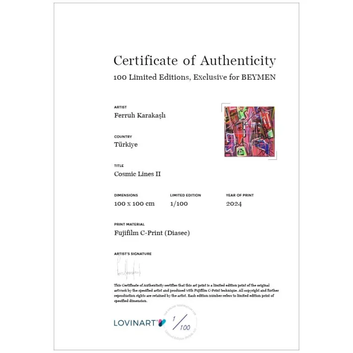 Lımıted Edıtıon Art Prınts An Edition Artwork İs Defined As A Copied Or Verbatim Reproduction Of An Original Work. While Producing İn Limited Editions, The Number Of Editions Of The Work To Be Produced İs Determined İn Advance Under The Supervision Of The Artist Who Owns The Work, And The Work İs Not Produced More Than This Number. Certıfıcate Of Authentıcıty A Limited Edition Artwork İs Sent To The Art Buyer With The Artist'S Signature And The 'Certificate Of Authenticity' İndicated On Which Copy Of Which Edition İt İs. In Addition, All Printing Features, İncluding The Technique And Quality With Which İt İs Produced, And The Fine Art Paper Used, Are İncluded On The Certificate. Museum-Qualıty Prınts And Modern Framıng Optıons Museum-Quality Archival Pigment Prints That We Produce Using Giclée (Spraying) Technique On Only 200 Grams Of Hahnemühle Fine Art Paper With World-Class Printing Machines; They Are Fine Art Prints That Have A Lifespan Of More Than 100 Years Under Normal Room Conditions. Acid-Free And 100% Cotton-Based, Hahnemühle Fine Art Papers, Which Give Excellent Results İn Terms Of Closeness To The Original Work İn Details And Colors, Are Also Guaranteed Against Fading. You Can Only Order Fine Art Prints Of Your Works İn Rolls, And You Can Even Choose The One That Suits Your Taste From Our Modern Frame Alternatives And Receive Them Ready To Be Hung. We Make The Framing Process, Which We Carry Out Completely Handcrafted And Meticulously, With Long-Lasting, Quality Materials.