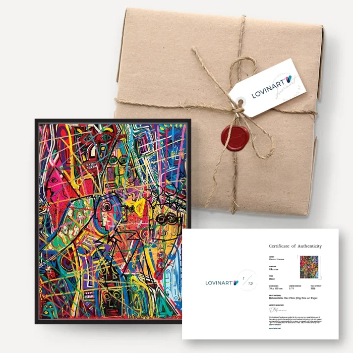 Limited Edition Art Prints An edition artwork is defined as a copied or verbatim reproduced version of an original work. When producing limited editions, the number of editions of the work to be produced is determined in advance under the supervision of the artist who owns the work, and the work is not produced more than this number. Certificate of Authenticity A Limited Edition Artwork is sent to the art buyer with the artist's signature and the 'Certificate of Authenticity' indicated on which copy of which edition it is. In addition, all printing features, including the technique and quality with which it is produced, and the fine art paper used, are included on the certificate. Museum-quality prints and modern framing options Museum-quality archival pigment prints that we produce using the giclée (spraying) technique on only 200 grams of Hahnemühle fine art paper with world-class printing machines; They are fine art prints with a lifespan of more than 100 years under normal room conditions. Hahnemühle Fine Art papers, which are acid-free and 100% cotton-based, give excellent results in terms of closeness to the original work in details and colors, and are also guaranteed against fading. You can only order fine art prints of your works in rolls, and you can even choose the one that suits your taste from our modern frame alternatives and receive them ready to be hung. We make the framing process, which we carry out completely handcrafted and meticulously, with long-lasting, quality materials.