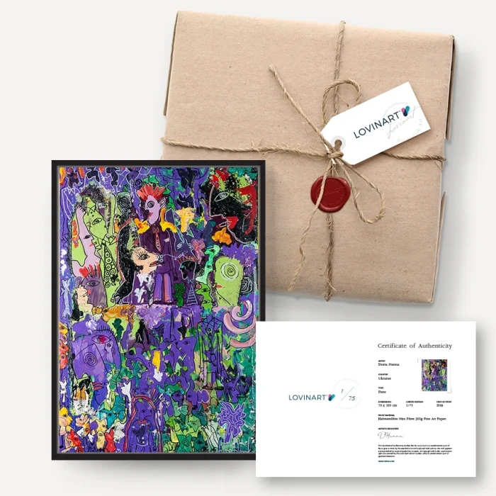 LIMITED EDITION ART PRINTS An edition is defined as a copy or replica of a work of art made from a master. When making production in limited editions, the number of editions to be produced is determined in advance under the supervision of the painter, and the work is not produced more than this number. CERTIFICATE of AUTHENTICITY The limited edition artwork is sent to the art buyer together with the signature of the artist on the 'Certificate of Authenticity' indicating which copy of the total editions. In addition, all the printing details, including the printing technique, quality and the fine art paper used, are listed on the certificate. MUSEUM-QUALITY PRINTING & MODERN FRAMING OPTIONS Museum-quality archival pigment prints that we produce using Giclée (Spraying) technique on Hahnemühle fine art paper with world class printing machines are fine art prints with a life span of more than 100 years under normal room conditions. Acid-free and 100% cotton-based Hahnemühle fine art papers are excellent in terms of proximity to the original work in details and colors, and are guaranteed against fading. DIASEC works are printed on metallic photo paper with C-Print technic. You can either order only fine art prints in rolls or choose from our modern framing alternatives according to your taste and receive them ready to be hung. We do the completely hand-crafted and meticulous framing process with long-lasting, quality materials.