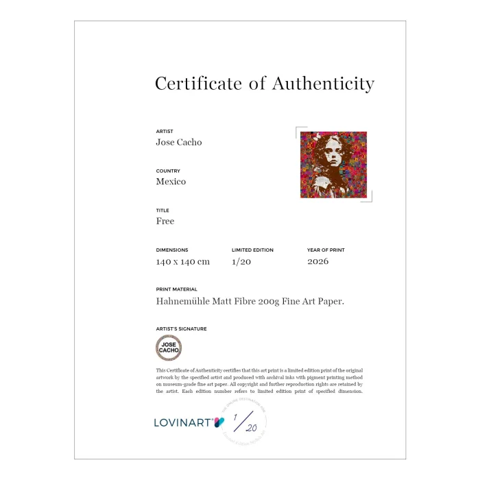 LIMITED EDITION ART PRINTS An edition artwork is defined as a copied or exact reproduced version of an original work. When producing in limited editions, the number of editions of the work is determined in advance under the supervision of the artist who owns the work, and the work is not produced more than this number. CERTIFICATE OF AUTHENTICITY A limited edition work of art is sent to the art buyer with the artist's signature and the 'Certificate of Authenticity' stating the number of copies of the edition. In addition, all printing features, including the technique and quality with which it is produced and the fine art paper used, are included on the certificate. MUSEUM-QUALITY PRINTS AND MODERN FRAMING OPTIONS Museum-quality archival pigment prints that we produce using the Giclée (spraying) technique on only 200 grams of Hahnemühle fine art paper with world-class printing machines; They are fine art prints that have a life of more than 100 years under normal room conditions. Acid-free and 100% cotton-based, Hahnemühle fine art papers, which give excellent results in terms of closeness to the original work in terms of details and colors, are also guaranteed against fading. You can order only fine art prints of your works in rolls, and you can even choose the one that suits your taste from our modern frame alternatives and receive it ready to be hung. We do the framing process, which we carry out completely by hand and meticulously, with long-lasting, quality materials.