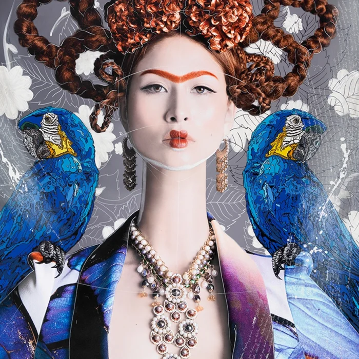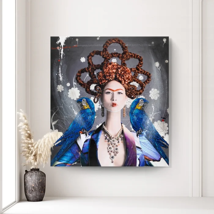 Product: Ginger Haired Frida With Blue Macaws By Efren Isaza Print